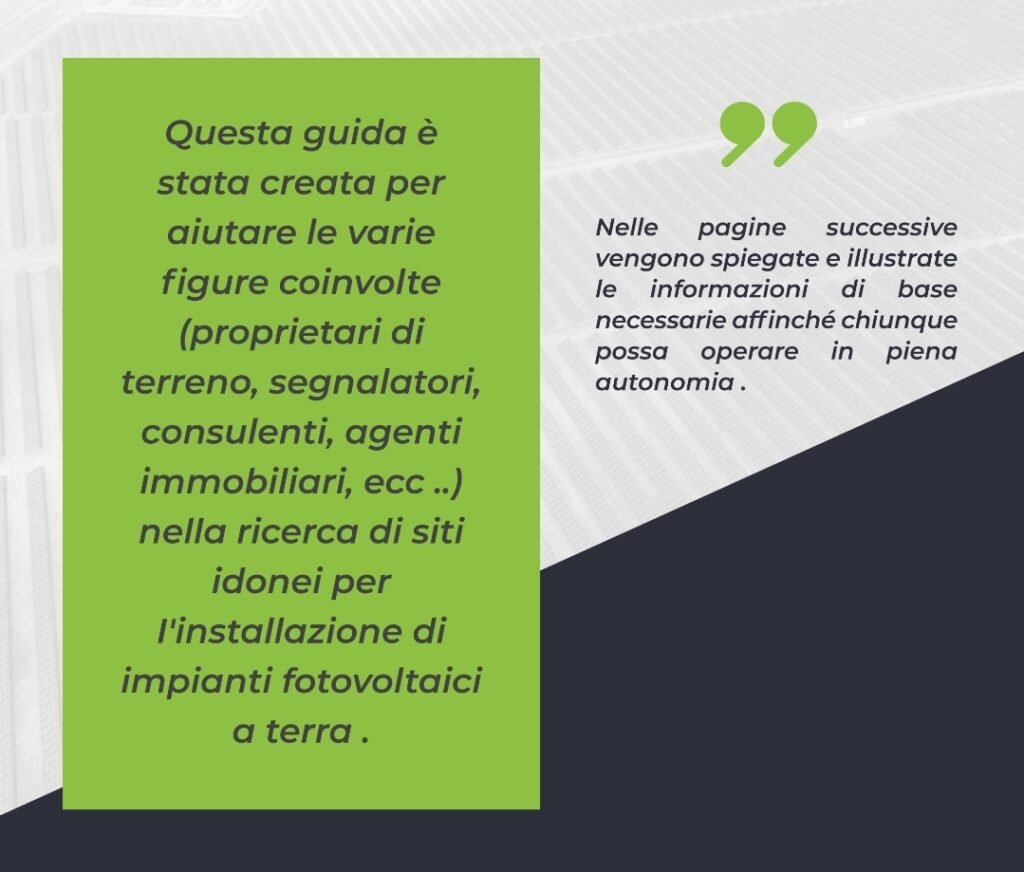 GUIDA PER LA RICERCA DI SITI IDONEI PER L' INSTALLAZIONE DI IMPIANTI FOTOVOLTAICI-AGRIVOLTAICI VALUTAZIONE del sito: il terreno VALUTAZIONE del sito: la rete elettrica CONTATTI Mail: info@hnvenergy.itTelefono: 0150990590Via Aldo moro,4-13900, Biella (BI)